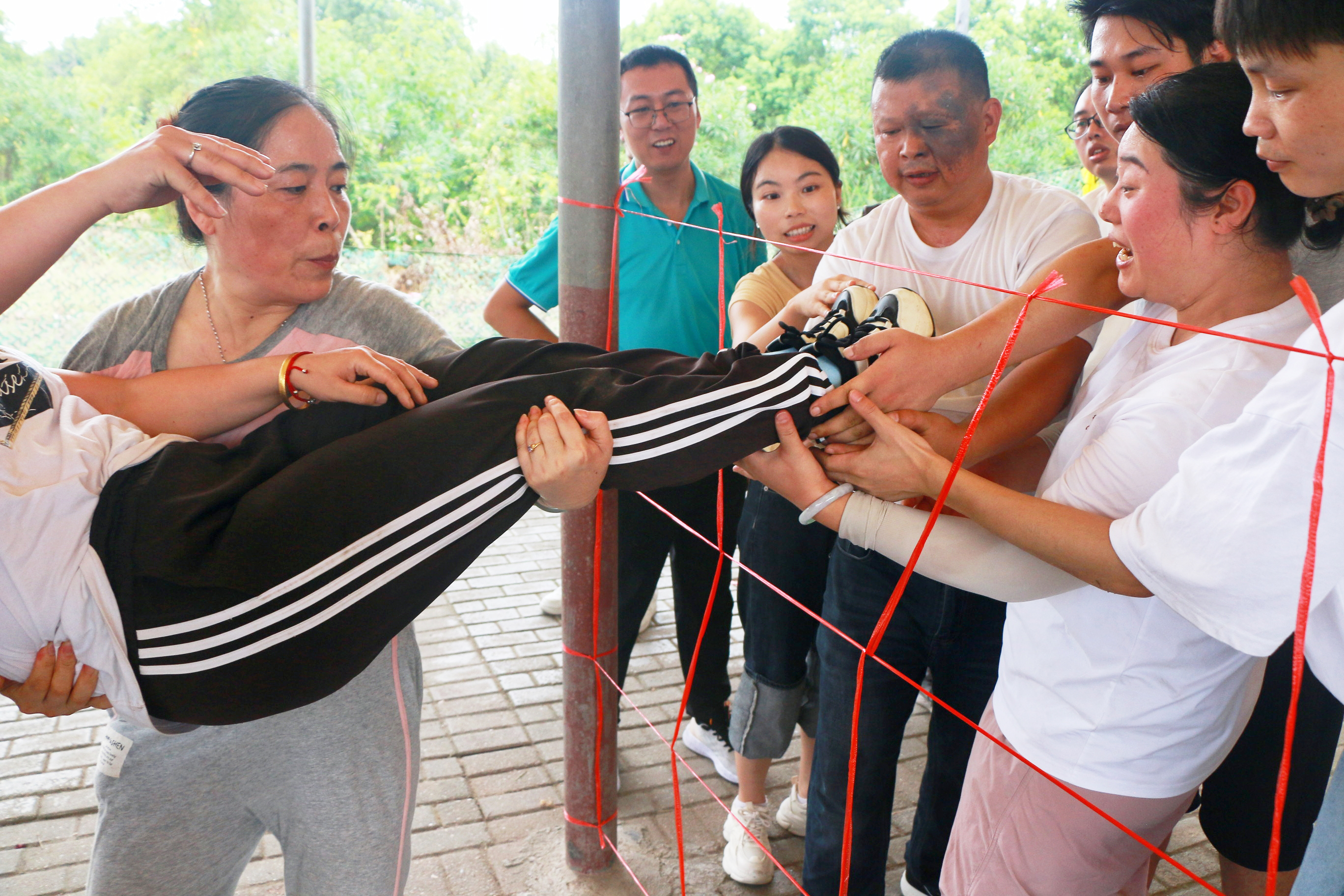 在团队合作的默契配合下,YABO鸭脖一起克服重重困难,相信同事,成功取到指定位置的水瓶。